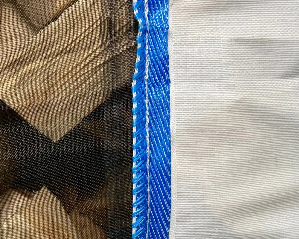 2 Seiten Vollnetzgewebe (HDPE), 2 Seiten beschichtetes PP-Gewebe